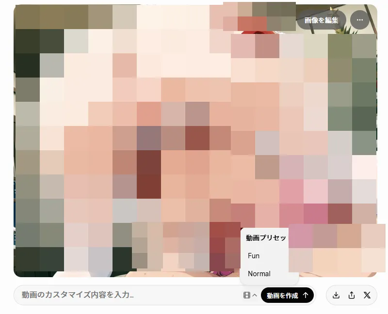 プロンプトを工夫しても(Grokおまかせ含む)、NSFW要素が入るとブロックされました。